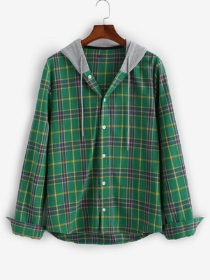 Zaful The hooded plaid shirt perfectly matches with any outfit, delivering ultimate comfort and rustic style, which is to be a classic style. It is embellished with a color-block drawstring attached hood, frontal button closure, long sleeves with adjustable buttoning at cuffs, giving a comfy fit. I