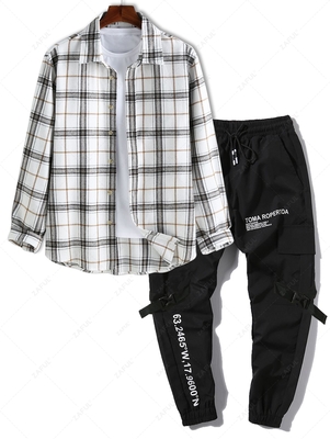 Zaful Type: Shirt& Pants Set Style: Casual, Preppy Style Occasions: Daily, School Top Length: Regular Sleeves Length: Full Bottom Length: Long Pants Waist Type: Mid Closure Type: Drawstring, Elastic Waist Pattern Type: Letter, Plaid