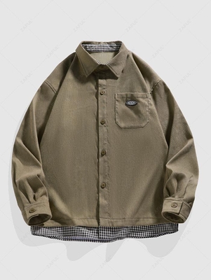 Plaid Panel Patched Front Pocket Corduroy Shirt 2xl Oak Brown