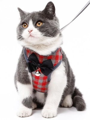 Plaid Pattern Pet Harness And Leash Set With Bell