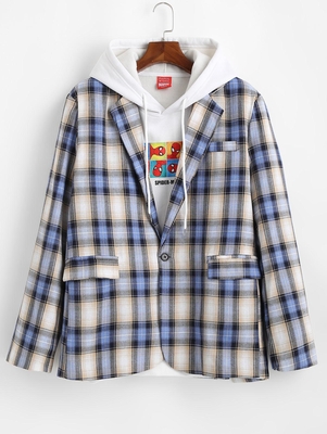 Plaid Pattern Slit Single Button Blazer 2xl Blueberry Blue