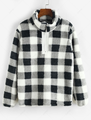 Plaid Plush Half Zip Sweatshirt L Black