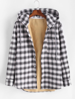 Zaful This jacket is composed of a faux fleece lining that shapes a drawstring hooded collarline, & long sleeves with button cuffs. Give your look a wicked cool with the shacket! Clothes Type: Jackets Style: Casual Occasions: Daily