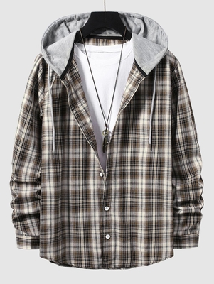 Zaful Decorated with the timeless plaid print, the shirt accentuated the appeal of the leisurely style is suitable for the season play for a chic finish. It's cut to the casual fit and classically styled with its neat button-down silhouette and contrasting hood. Shirts Type: Casual Shirts Style: Ca