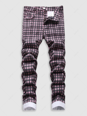 Plaid Print Pockets Zipper Retro Jeans 38 Concord