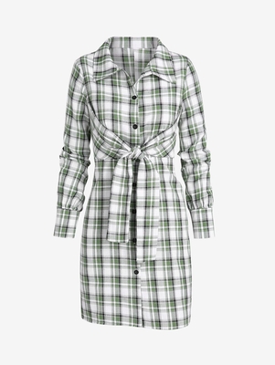 Zaful Style: Casual Occasion: Daily Dress Type: Shirt Dress Silhouette: Straight Collar-line: Shirt Collar Sleeves Length: Long Sleeves Dresses Length: Mini Material: Polyester Material Stretch: No Stretch Pattern Type: Plaid Decoration: Tie Season: Fall, Spring With Belt: No Weight: 0.3240kg Packag