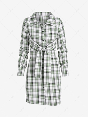 Material: Polyester Material Stretch: No Stretch Pattern Type: Plaid Decoration: Tie Season: Fall, Spring With Belt: No Weight: 0.3240kg Packag