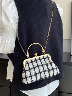 Zaful Gender: For Women Type: Crossbody bag, Handbag Shape: Irregular Style: Chinoiserie, Fashion, Retro Occasion: Bridesmaid, Cocktail & Party, Evening, Holiday, Party, Prom, Semi Formal Closure Type: Kiss Lock Strap Type: Chain Pattern Type: Grid