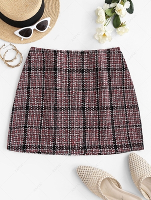 Zaful Have everyone falling for your stylish ways when they see you in the mini skirt! Medium-weight tweed in a plaid pattern shapes this cute skirt with a high-rise fit that sweeps down a bodycon silhouette & ends at a flirty mini hem. Pair with an elegant blouse for a complete look! Style: Eleg