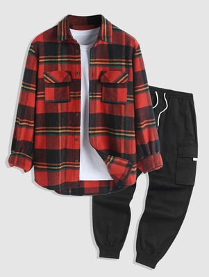 Zaful Type: Jacket& Pants Set Style: Fashion, Streetwear Occasions: Daily Top Length: Regular Sleeves Length: Long Sleeves Bottom Length: Long Pants Waist Type: Mid Closure Type: Drawstring Pattern Type: Plaid Decoration: Adjustable Waist, Pocket