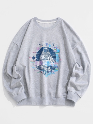 Zaful Put together a comfortable casual or sportswear outfit with this graphic sweatshirt. The crew collar design has a distinctive creative planet astronaut graphic on the front. A good option for taking a leisurely weekend or vacation. Clothes Type: Sweatshirts Style: Casual Shirt Length: Regular