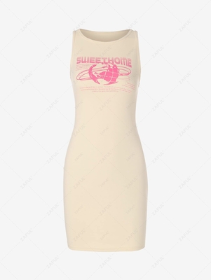 Zaful Style: Casual Occasion: Daily Dress Type: Tank Dress Silhouette: Bodycon Collar-line: Round Collar Sleeves Length: Sleeveless Dresses Length: Mini Material: Polyester, Spandex Material Stretch: High Stretch Pattern Type: Letter Season: Summer With Belt: No Weight: 0.1650kg Package: 1 x Dress