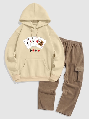 Zaful Type: Hoodie& Pants Set Style: Fashion, Streetwear Occasions: Daily Top Length: Regular Sleeves Length: Long Sleeves Bottom Length: Long Pants Waist Type: Mid Closure Type: Elastic Waist Pattern Type: Bear, Playing Cards Decoration: Pocket