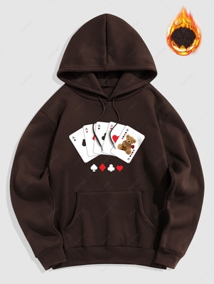 Playing Card Pattern Fleece-lined Hoodie Xl Deep Coffee