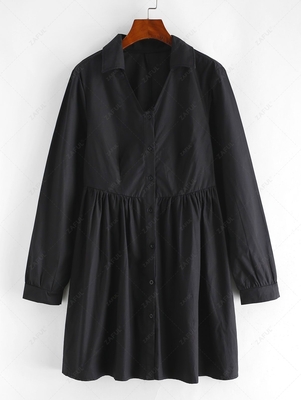Zaful Designed in the same mini-length, it comes with a slightly pleated waist, long sleeves, & a button fastening through the front. Layer with chunky knits & cardigans until the temperatures rise. Style: Brief Occasion: Daily Dress Type: Shirt Dress Silhouette: A-Line Collar-line: V-Collar Sl