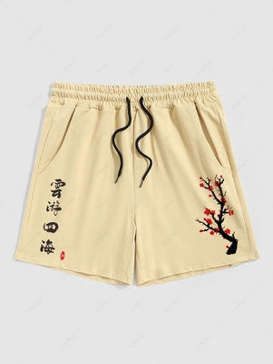 Plum Blossoms And Chinese Characters Print Shorts Xl Deep Yellow