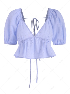 Zaful Breezy puff sleeves & ruffly peplum bring understated femininity to this cropped blouse which charms with a back tie & an alluring plunging collarline. Occasion: Daily Style: Fashion Collar: Plunging Collar Fit Type: Regular