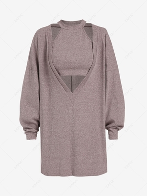 Zaful Style: Sexy Shirt Length: Longline Collar: Plunging Collar Sleeve Type: Drop Shoulder Sleeves Length: Long Sleeves Fit Type: Loose Material: Cotton, Polyester, Spandex Material Stretch: High Stretch Pattern Type: Solid Color Seasons: Fall Weight: 0.4800kg Package: 1 x T Shirt 1 x Tank Top