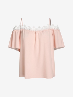Plus Size Cold Shoulder Floral Crochet Blouse