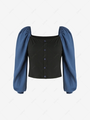 Material: Polyester Material Stretch: High Stretch Shirt Length: Short Sleeve Type: Puff Sleeve Sleeves Length: Full Pattern Type: Colorblock Decoration: Button Seasons: Fall Weight: 0.2500kg Package: 1 x Blouse
