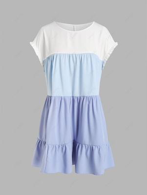 Plus Size Colorblock Ruffle Mini Tiered Dress