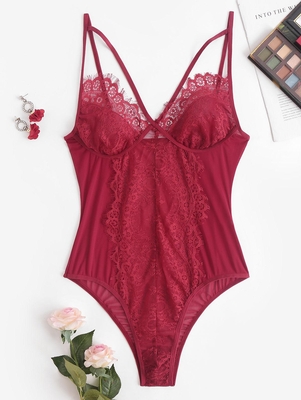 Zaful Romantic & seductive, this barely-there teddy is crafted from floral lace & sheer mesh for a captivating look with caged cutouts & eyelash trims for an extra flirt. Style: Sexy