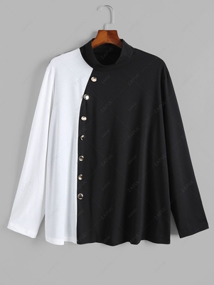 Zaful Basic tops are the perfect companion for your jeans. Featuring an on-trend bicolor design, a warm mock collar, and decorative buttons, the simple style can be paired with anything and dressed up or down. Style: Fashion Occasions: Daily Shirt Length: Regular Collar: Mock Collar Sleeves Length: