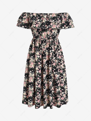 Plus Size Off Shoulder Layered Flounce Floral Dress