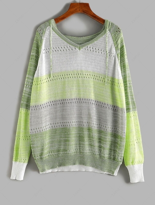 Plus Size Pointelle Knit Raglan Sleeve Colorblock Hooded Knitwear