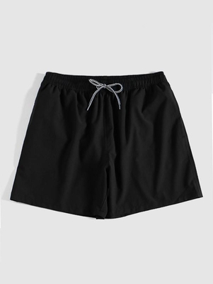 Pure Color Drawstring Beach Shorts M Black