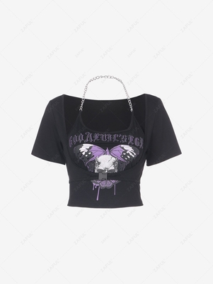 Material: Polyester, Rayon, Spandex Material Stretch: Slight Stretch Decoration: Buckle, Chains Pattern Type: Butterfly, Skulls Seasons: Summer Weight: 0.1700kg Package: 1 x T