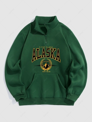 Quarter Zip ALASKA Graphic Fleece Thermal Lined Front Pocket Vintage