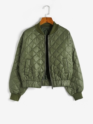 Quilted Drop Shoulder Bomber Jacket L Deep Green