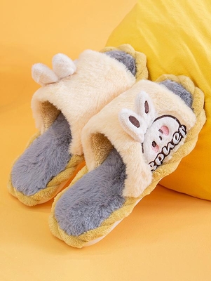 Rabbit Pattern Fluffy Faux Fur Slippers