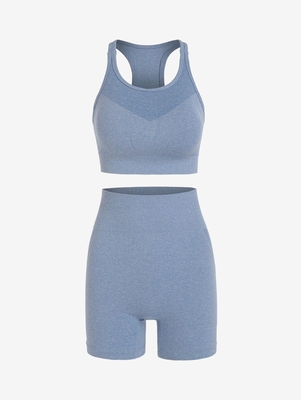 Racerback Heathered Scrunch Butt Sports Shorts Set M Light Sky Blue