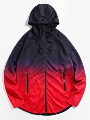 Raglan Sleeve Ombre Zip Up Hoodie Jacket M Red
