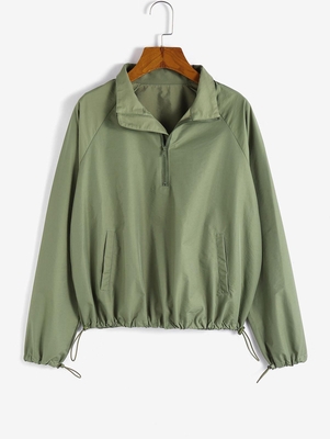 Raglan Sleeve Toggle Drawstring Half Zip Windbreaker Sweatshirt M