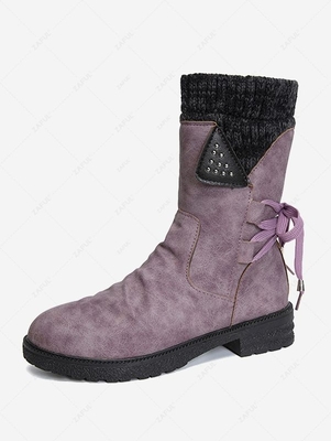 Retro Knitted Spliced Design Back Lace-up Fleece-lined Calf Boots