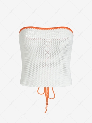 Reversible Open Knit Lace Up Strapless Contrast Trim Tank Top S White