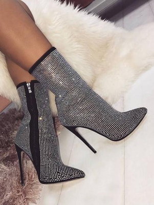 Ankle Toe Shape: Pointed Toe Heel Type: Stiletto Heel Closure Type: Zip Pattern Type: Others Decoration: Rhinestone Outsole
