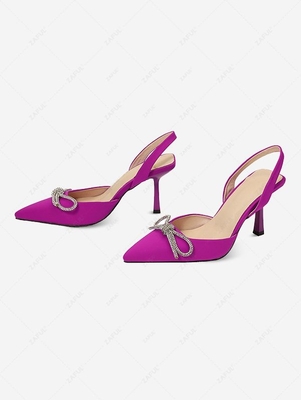 Zaful Shoes Style: Pumps Style: Elegant Occasion: Evening, Holiday, Party, Wedding Strap Type: Slingbacks Heel Type: High Heel Toe Style: Closed Toe Toe Shape: Pointed Toe Upper Material: Satin Outsole Material: Rubber Insole Material: PU Pattern Type: Solid Color Decoration: Bowknot, Rhinestone Season