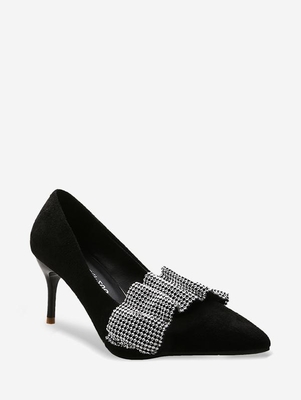 Zaful Shoes Style: Pumps Style: Elegant Occasion: Holiday, Party Strap Type: Slip-On Heel Type: Stiletto Heel Toe Style: Closed Toe Toe Shape: Pointed Toe Upper Material: Suede Pattern Type: Others Decoration: Rhinestone Season: Fall, Spring, Summer Weight: 1.3398kg Package: 1 x Pumps