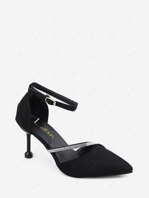 Rhinestone Decor Stiletto Heel Ankle Strap Pumps