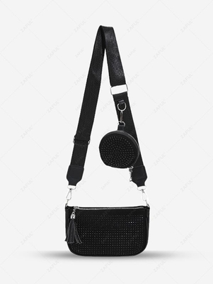 Zaful Gender: For Women Type: Crossbody bag, Shoulder bag Shape: Rectangle Style: Casual Occasion: Daily Closure Type: Zipper Strap Type: Adjustable Pattern Type: Others Decoration: Rhinestones, Tassel