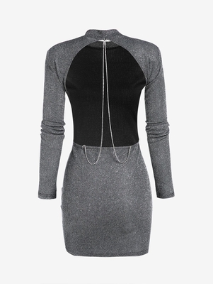 Zaful Style: Cute, Sexy Occasion: Club, Date Night, Going Out, Night Out, Party Silhouette: Bodycon Collar-line: Mock Collar Sleeves Length: Long Sleeves Dresses Length: Mini Material: Polyester, Spandex Material Stretch: High Stretch Thickness: Standard Pattern Type: Others Decoration: Backless, Chains, M