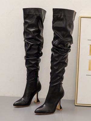 Over-the-Knee Toe Shape: Pointed Toe Heel Type: Others Closure Type: Zip Pattern Type: Solid Color Outsole