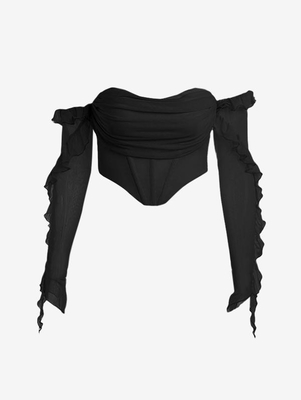 Material: Polyester, Spandex Material Stretch: High Stretch Decoration: Ruffles, See Thru Pattern Type: Solid Seasons: Spring, Summer Weight: 0.2000kg Package: 1 x Top