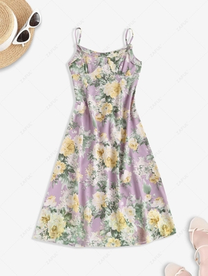 Zaful Vibrant blooms pop on this lightweight breezy sundress, fashioned with a pretty flared silhouette with slender shoulder straps to adjust the fit, a smocked back, & corset-style-inspired cups for a few retro vibes. Style: Cottagecore, Fashion Occasion: Beach, Day, Vacation Dress Type: Slip Dres