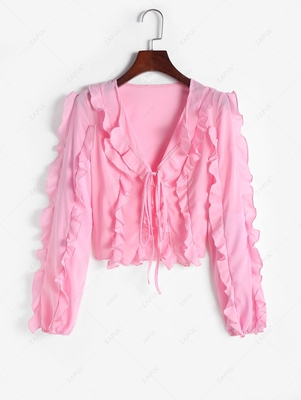 Ruffle Tie Front Crop Blouse S Light Pink