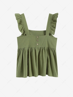 Zaful Style: Cute Shirt Length: Regular Collar: Square Collar Material: Cotton, Polyester Material Stretch: No Stretch Thickness: Standard Pattern Type: Solid Decoration: Button, Ruffles Seasons: Summer Weight: 0.1850kg Package: 1 x Tank Top